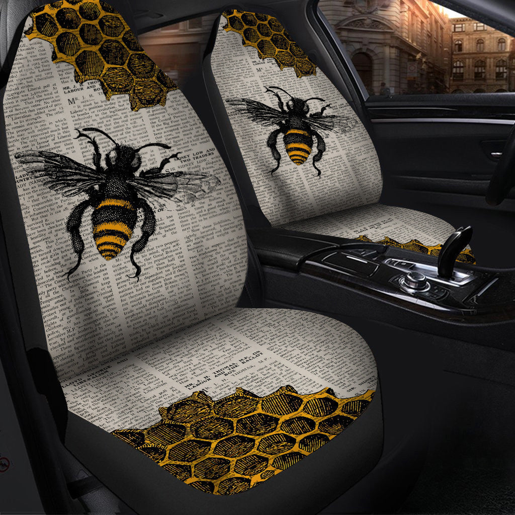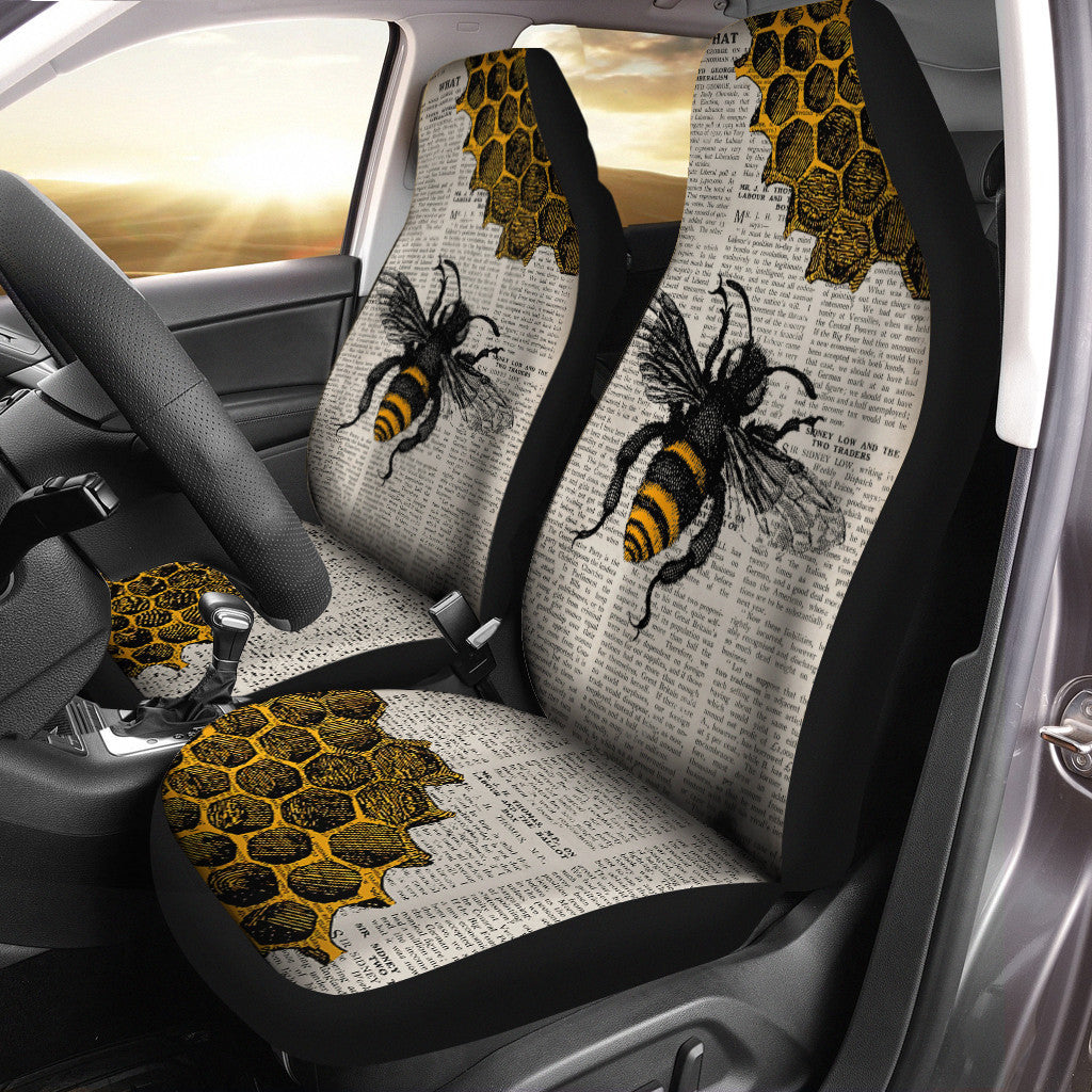 Bee Art Paper Car Seat Covers Universal Fit - Set 2